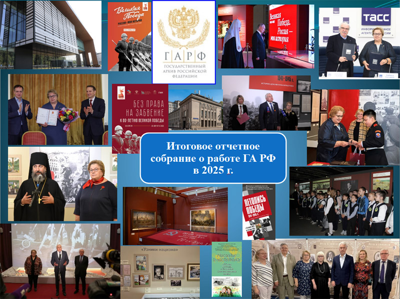 13 февраля 2026 г. в Государственном архиве Российской Федерации состоялось собрание, на котором обсуждены итоги работы коллектива в прошедшем 2025 году. С обстоятельным отчетом выступила директор ГА РФ Лариса Роговая. Заслушаны также сообщения заместителей директора по курируемым ими направлениям деятельности архива: Елены Анискиной, Елены Козловой, Ларисы Малашенко, Сергея Жука. Научный руководитель архива Сергей Мироненко остановился на ряде выставочных проектов минувшего года, организованных ГА РФ и ставших знаковыми событиями в культурной и духовной жизни страны. В работе собрания принял участие руководитель Федерального архивного агентства Андрей Артизов.